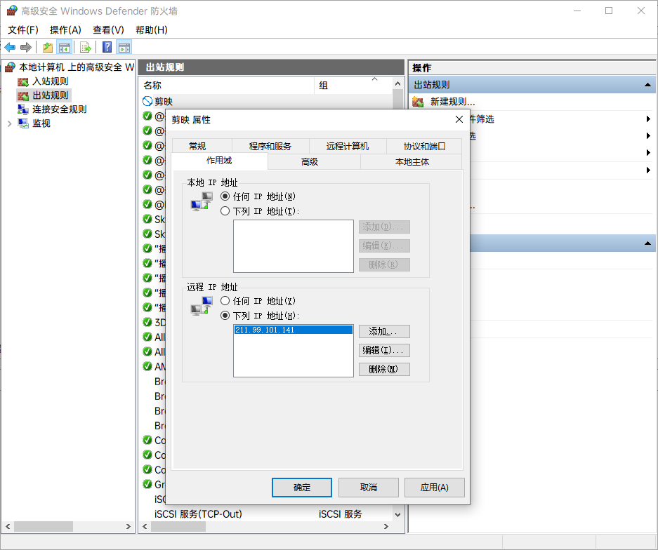 直接给这个IP地址加入防火墙,禁止出站访问(如上图,我在Windows加防火墙因为我是用安卓模拟器抓包测试的),再打开剪映就不会闪退了,问题完美解决。
